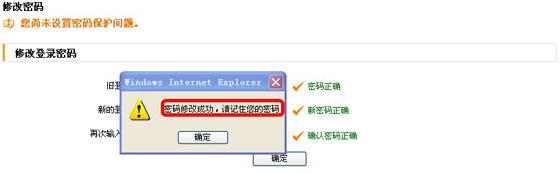 步骤三:弹出提示对话框,点“确定”,密码修改成功。