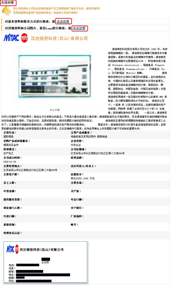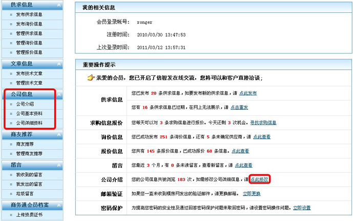 步骤一:在商务助手首页选择“点此修改 ”,或在左边的菜单栏上选择“公司信息”下的任一节点。