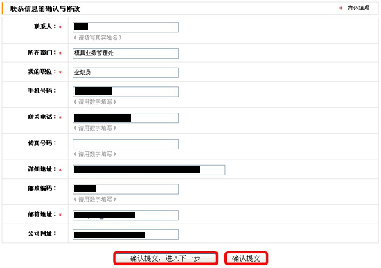 步骤三:点击“确认提交,进入下一步”或“下一步”按钮,跳转至“公司详细资料”页面。