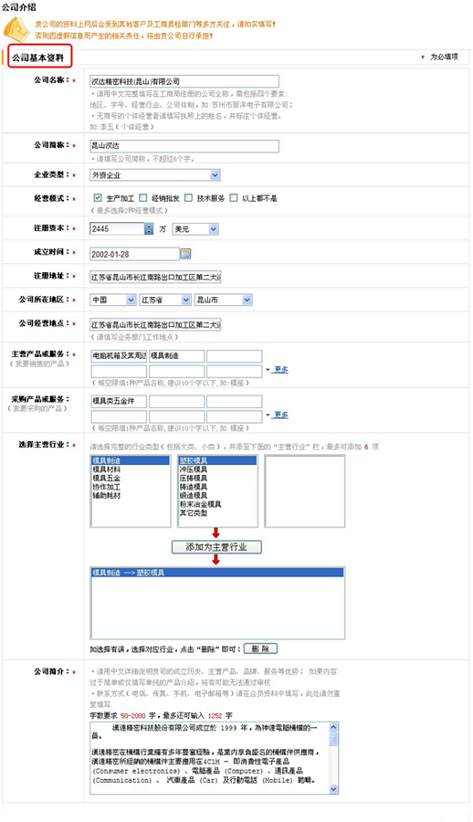 步骤五:点击“确认提交”即可在“公司介绍”页面预览所填写的资料。