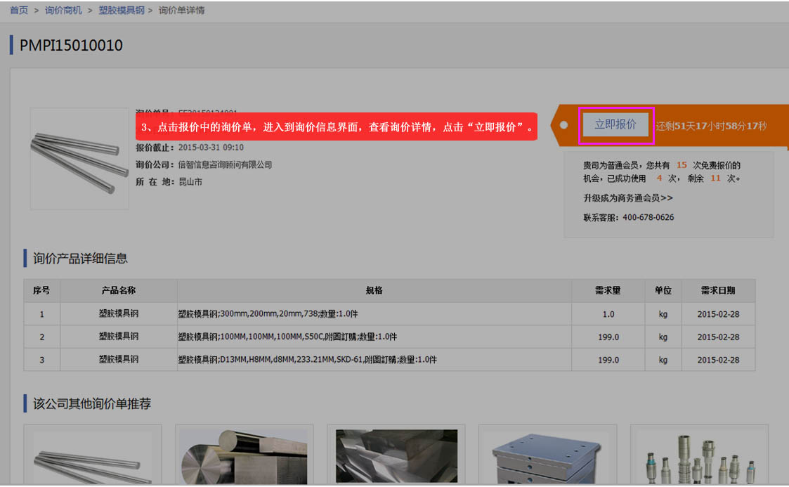 第四步:进入询价单信息界面,查看详情,点击“立即报价”。