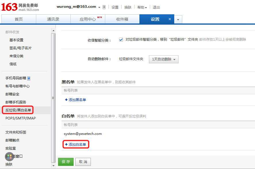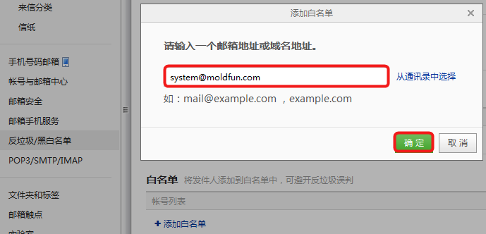 自助服务 >> 新手指南 >> 设置邮箱白名单
